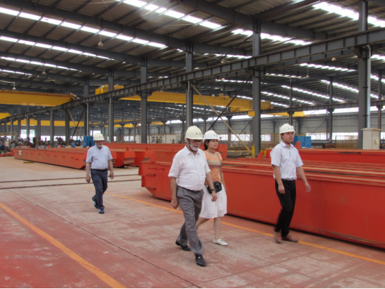 在我公司領(lǐng)導(dǎo)的陪同下,考察組一行先后到主梁生產(chǎn)車(chē)間、加工中心、小車(chē)車(chē)間等現(xiàn)場(chǎng)實(shí)地參觀考察,聽(tīng)取情況介紹。